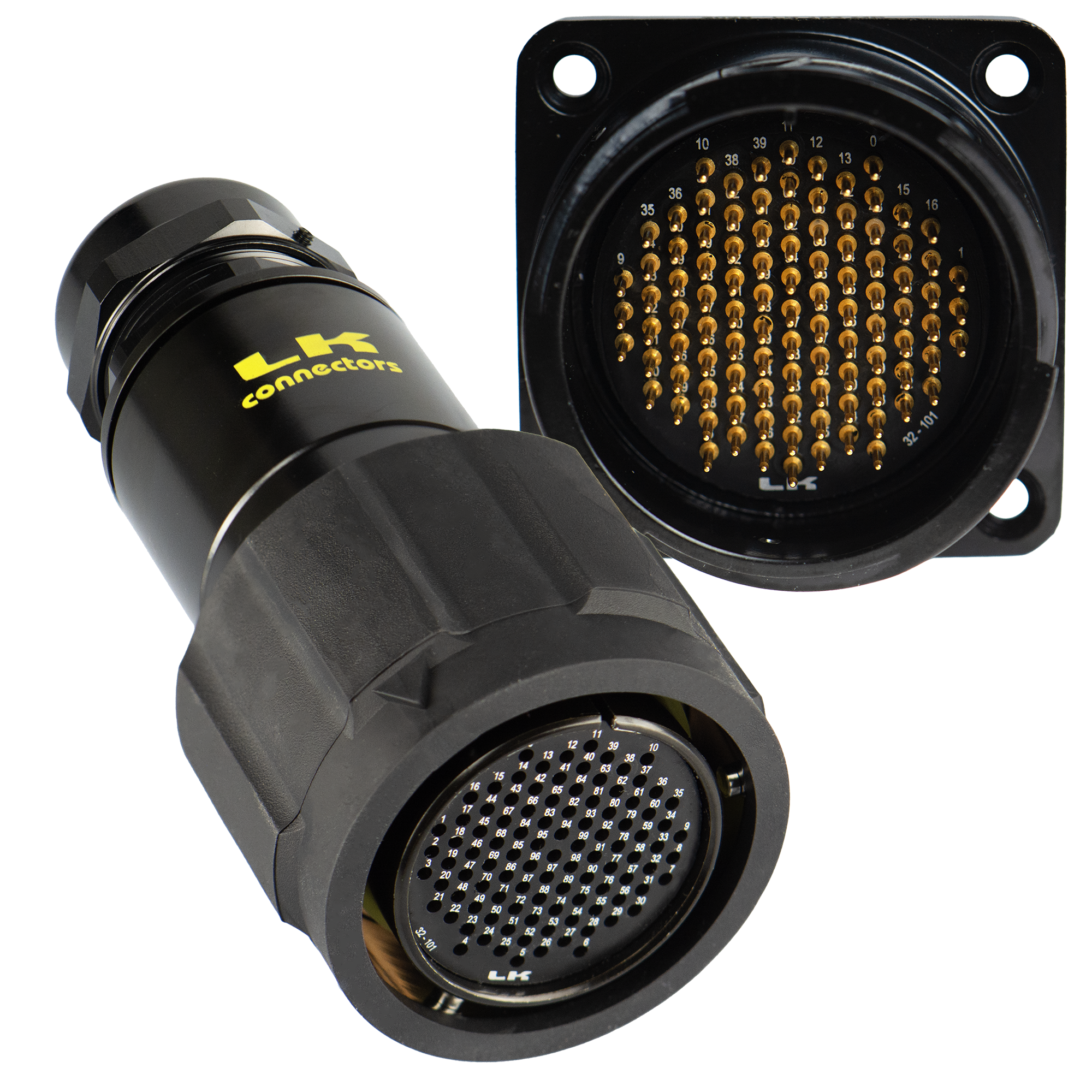 The LK 101-pole audio connectors offer 32 channels for analog or digital audio transmission, specifically designed for demanding professional audio applications. Built to meet rigorous MIL-DTL-5015 and VG 95234 standards, these connectors provide superior strength and reliability, ensuring secure connections.