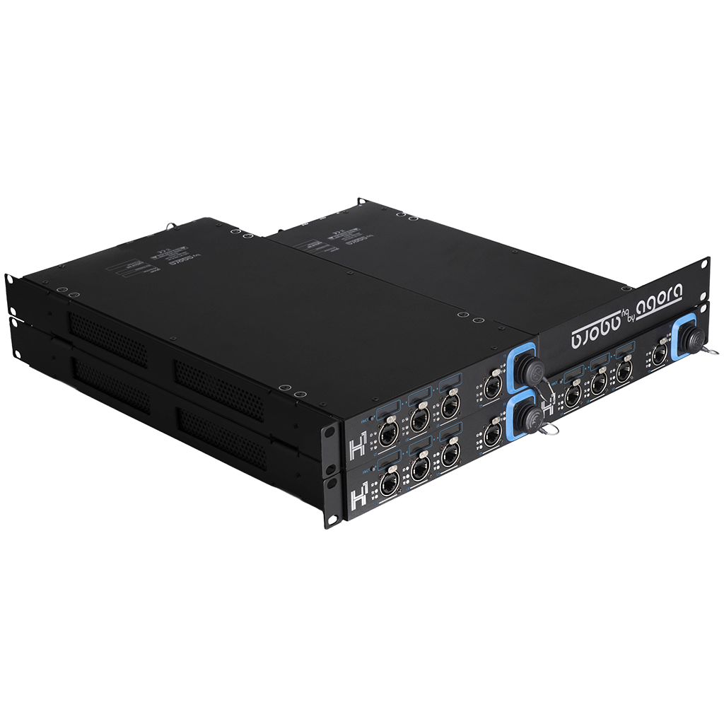 Agora H1 è uno switch di rete versatile da 1 Gbps e un bridge audio modulare, progettato per integrarsi perfettamente nelle reti audio basate su Dante. Alloggiato in un compatto chassis half-rack, combina uno switch configurabile con una matrice audio 128x128 a bassa latenza, facilitando il routing flessibile tra canali audio interni ed esterni. H1 supporta diverse topologie di rete, incluse bus, stella e anello, e offre funzionalità avanzate come IGMP snooping, QoS ed elezione del root bridge per garantire prestazioni di rete ottimali. Dotato di più porte Ethercon® e RJ45, ciascuna con etichettatura OLED e LED di stato, fornisce identificazione e monitoraggio chiari. H1 può essere personalizzato in base a specifici formati audio e requisiti di connettività, rendendolo una soluzione adattabile per scenari complessi di networking AV.