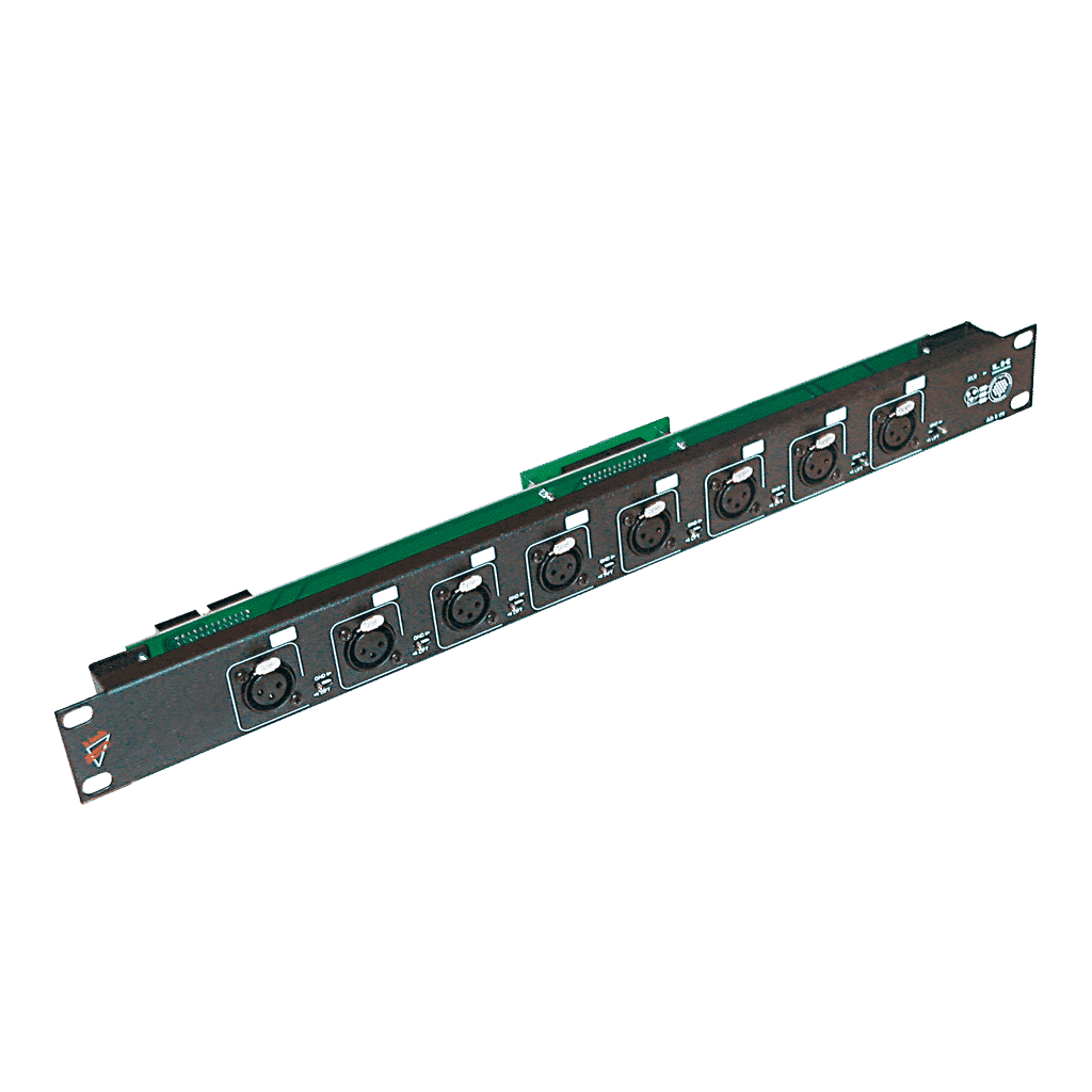 I moduli di ingresso distribuzione audio a 8 canali sono disponibili in due versioni: AD 8 IN e AD 8 IN 8 J, con otto connettori Combo che consentono ingresso XLR (segnali bilanciati) oppure, su richiesta, un jack (segnali sbilanciati). I segnali sbilanciati vengono bilanciati tramite trasformatori.